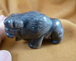 - (Y-BUF-741) Silver obsidian BUFFALO ranch bison gemstone figurine gem statue