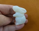 - (Y-BUN-ST-578) little white Opalite glass BUNNY RABBIT HARE gemstone FIGURINE