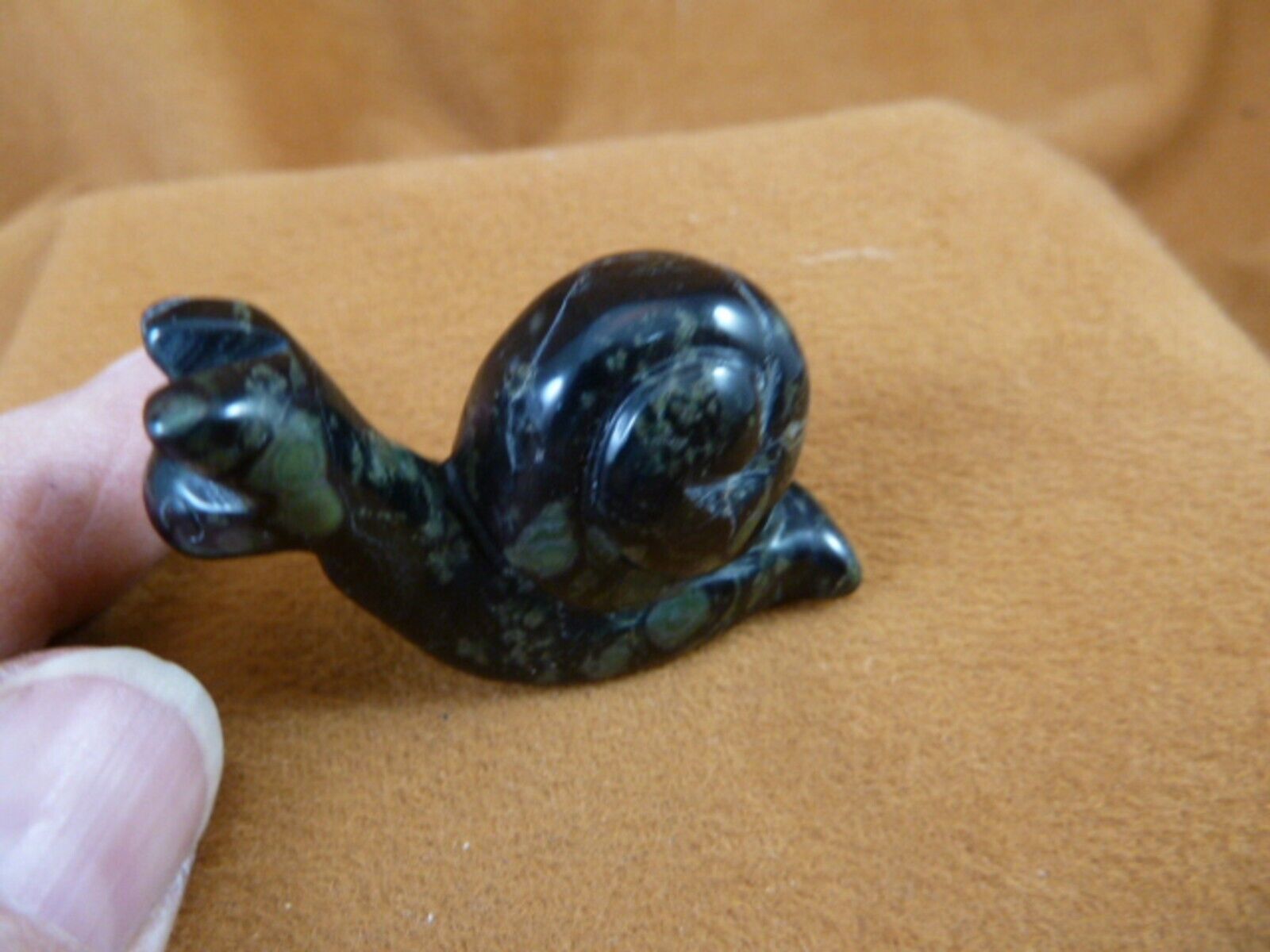 (internal #Y-SNAI-551). You are bidding on a SNAIL gemstone figurine, hand crafted in CHINA of polished, natural Green black Kambaba jasper gemstone, 1-3/4" long.
