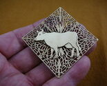 (Internal #B-COW-2) This is a brass reproduction Victorian stamped cow on a piece of filigree brass, made into a pin/pendant with beautiful detail. This gorgeous reproduction Victorian stamped brass is antiqued, then buffed to create some shine. ?BRASS IS A GOLD COLOR?. The pin/pendant (glued on the back) combination on the back of the piece of brass makes it easy to wear as a pin or pendant.