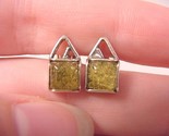 - (pe28-a) AMBER GREEN square Poland .925 Sterling SILVER stud EARRINGS Jewelry
