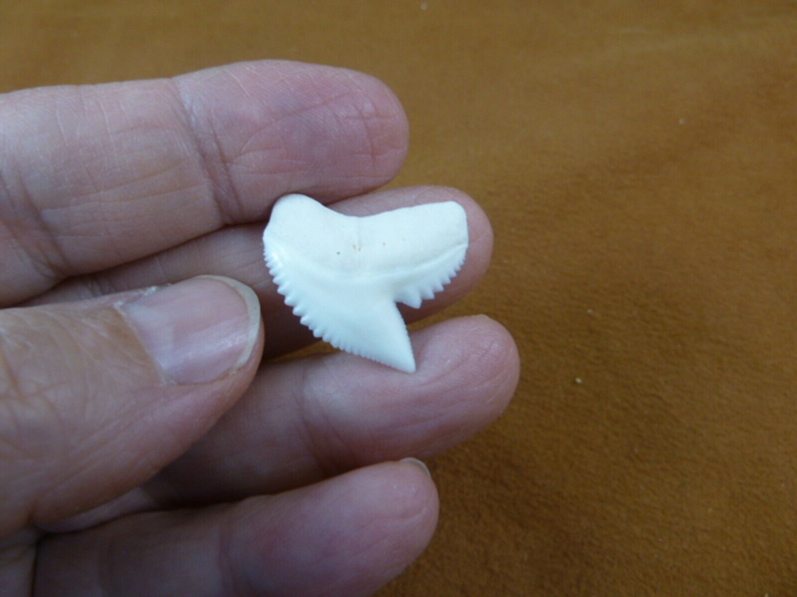 (s4-g) 1-1/16" White TIGER SHARK TOOTH pendant You Pick Silver or Gold wired
