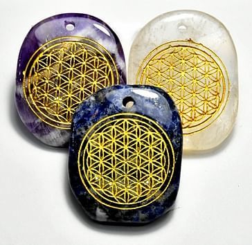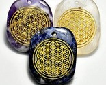 These worry stones come with a carved Flower of Life, to help amplify the energy of the crystal. Comes with a hole in it with the option of being worn as a pendant. These are chosen at random and come in Amethyst, Clear Quartz, Lapis Lazuli, and Rose Quartz. 1 1/2"+ long.