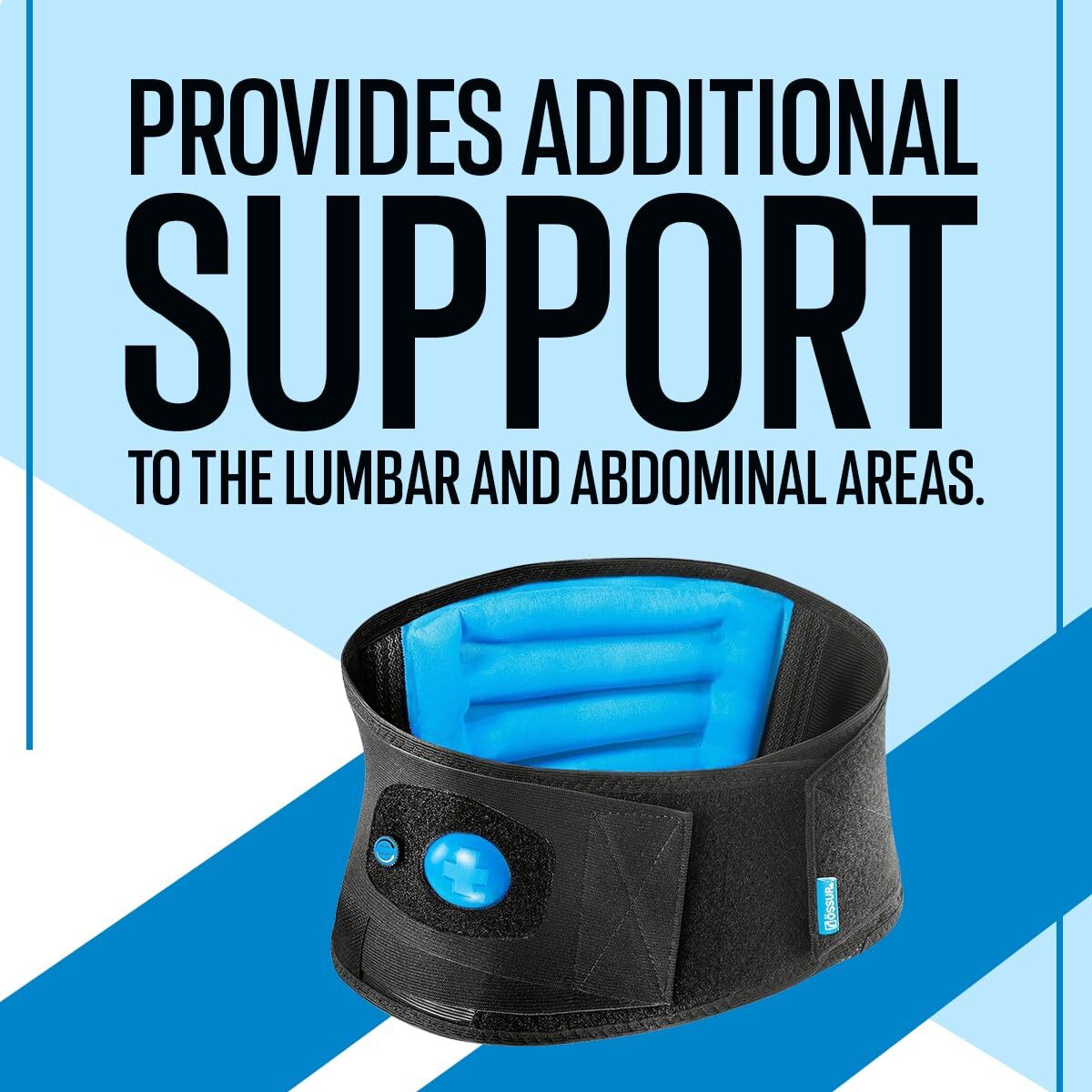 It also has gripper strips to prevent the brace from migrating and an adjustable air bladder for a customized fit.