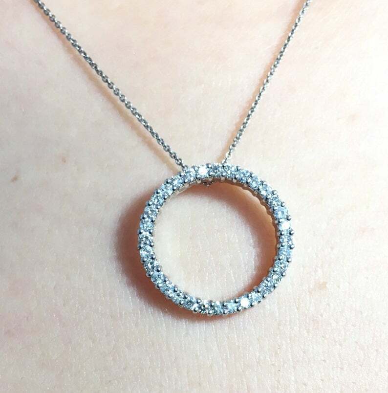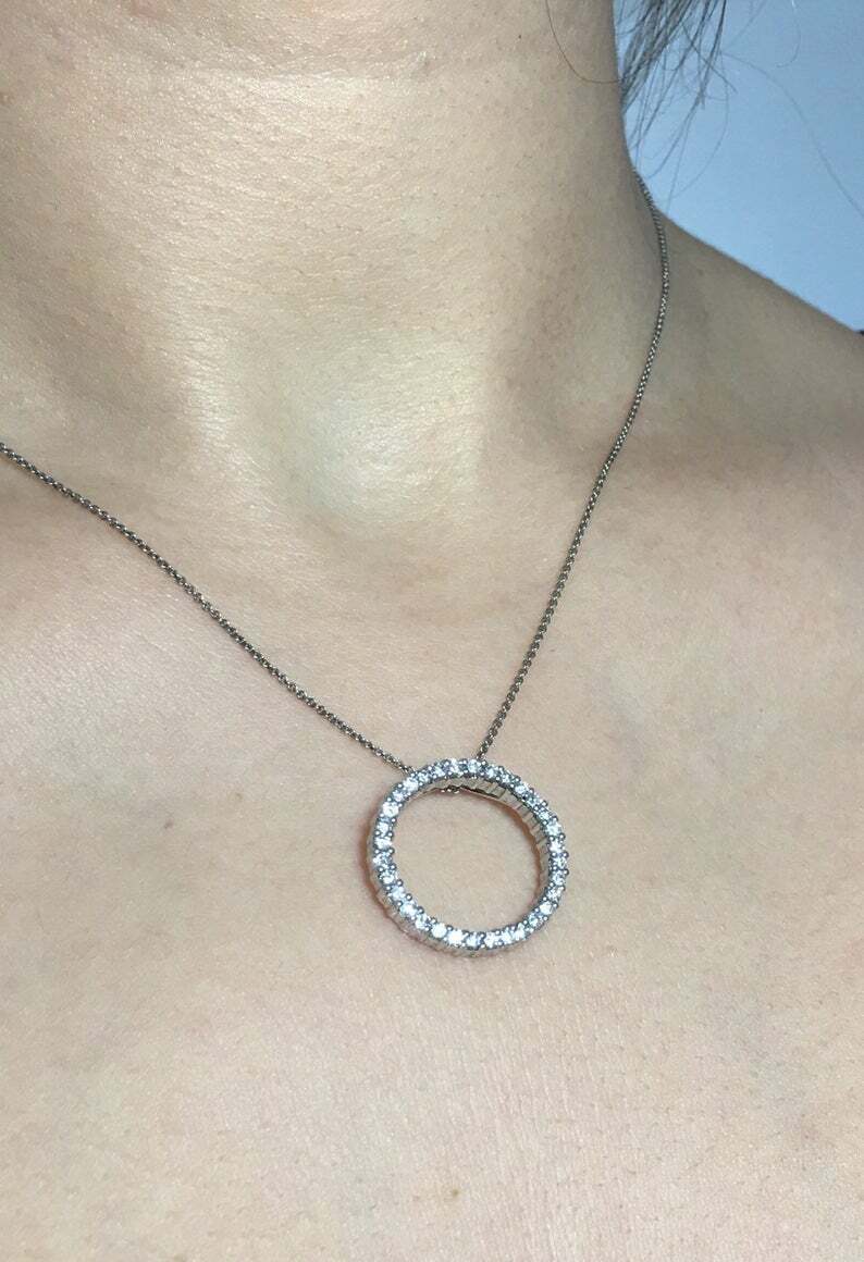 - 0.54ct Simulated Diamond Circle Of Life Pendant 14K White Gold Plated on Silver