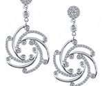 - 0.80 Ct Diamond Dangle Whirlwind Earrings 14k White Gold Women's Push Back