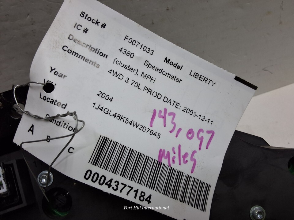 2002 through 2005 Jeep Liberty MPH speedometer, 143,097 mi.