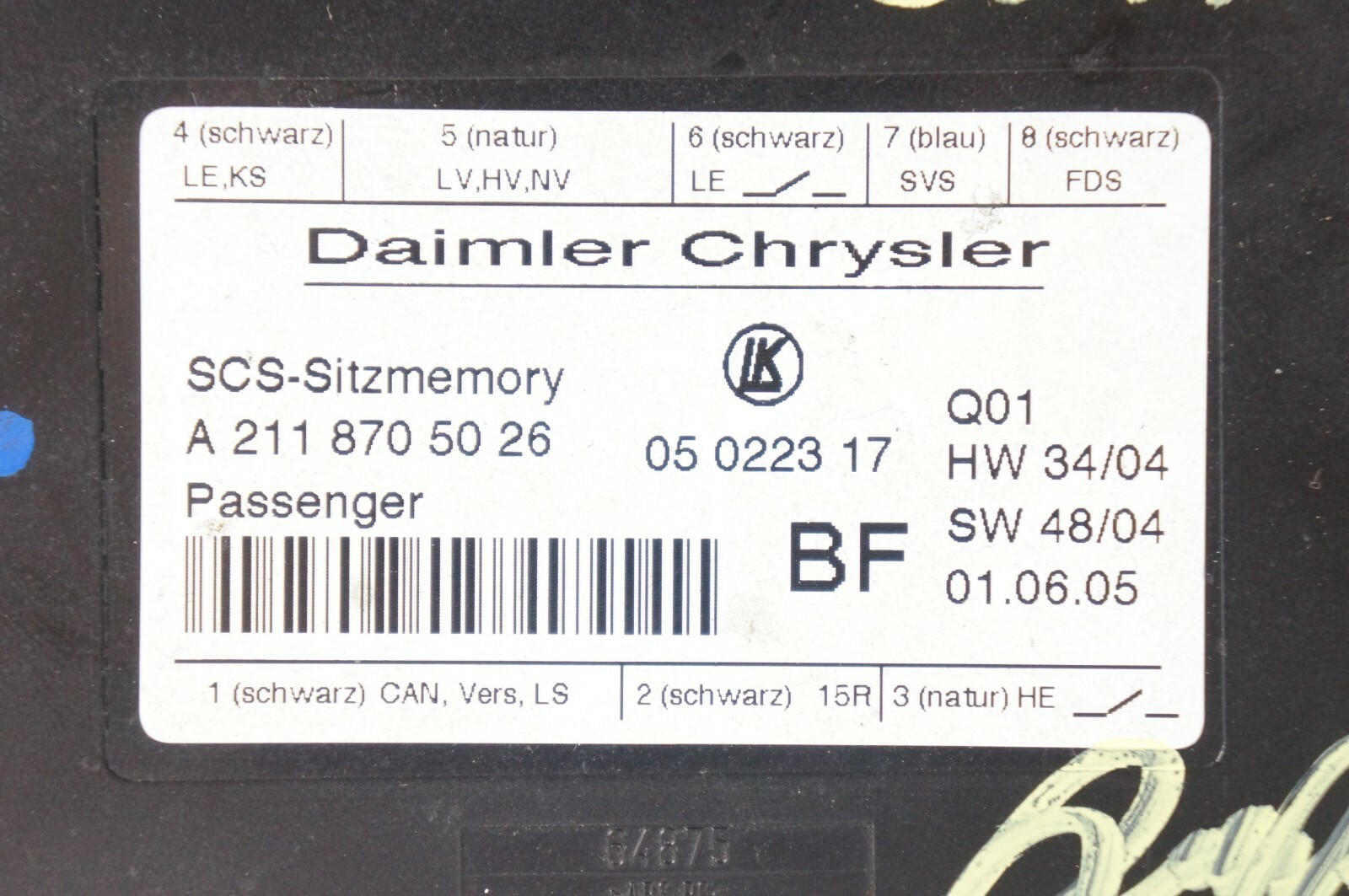 - 03-2010 mercedes w164 w211 w219 w251 front right seat control module computer
