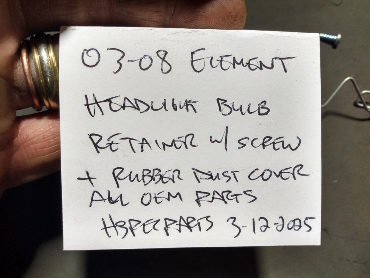 VERY GOOD USED CONDITION. ALL PARTS ARE OEM FROM A 2007 ELEMENT. RETAINER CLIP, SCREW AND RUBBER DUST BOOT WILL FIT 03-08 ELEMENT AND 02-06 CRV OEM HEADLIGHT. PARTS SHIP USPS WITHIN A BUSINESS DAY OF PAYMENT.