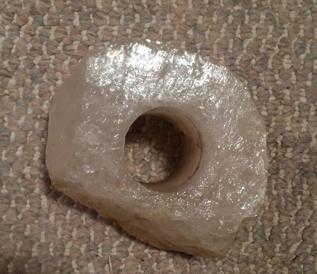Here we have a neat rock crystal type with a hole cut in the middle. Make a great paperweight and pen holder. Measures about 4.5 inches across. 3 inches tall. See photos as they are an important part of the description and will help you know what you are bidding on. I do not accept returns. I do my best to describe all items but Sometimes I miss things so the photos are important. . Please Please ask questions. Thanks for bidding and good luck. Check out all my items for some great finds. Lots of cool stuff at my sales. I can combine shipping on most.