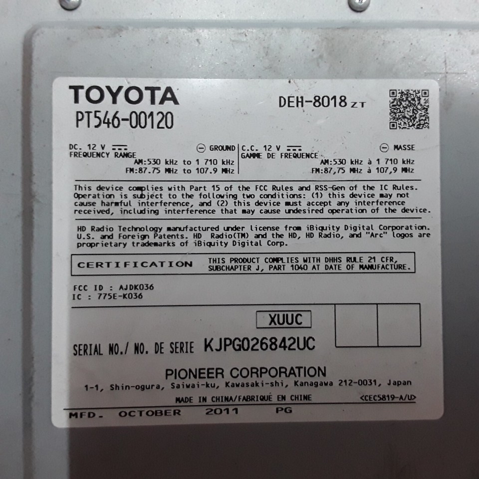 - 08 09 10 11 12 13 14 Scion TC XB XD AM FM CD Bluetooth radio PT546-00120 pioneer