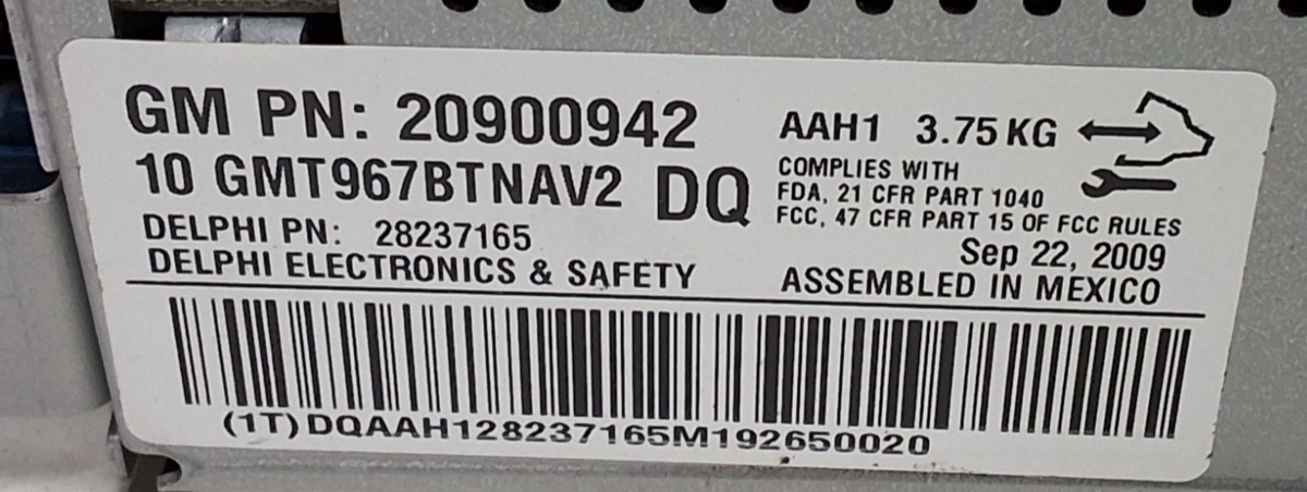 2009 to 2010 Chevrolet Traverse, GMC Acadia, Buick enclave, AM/FM CD DVD navigation radio. Part number 20900942.