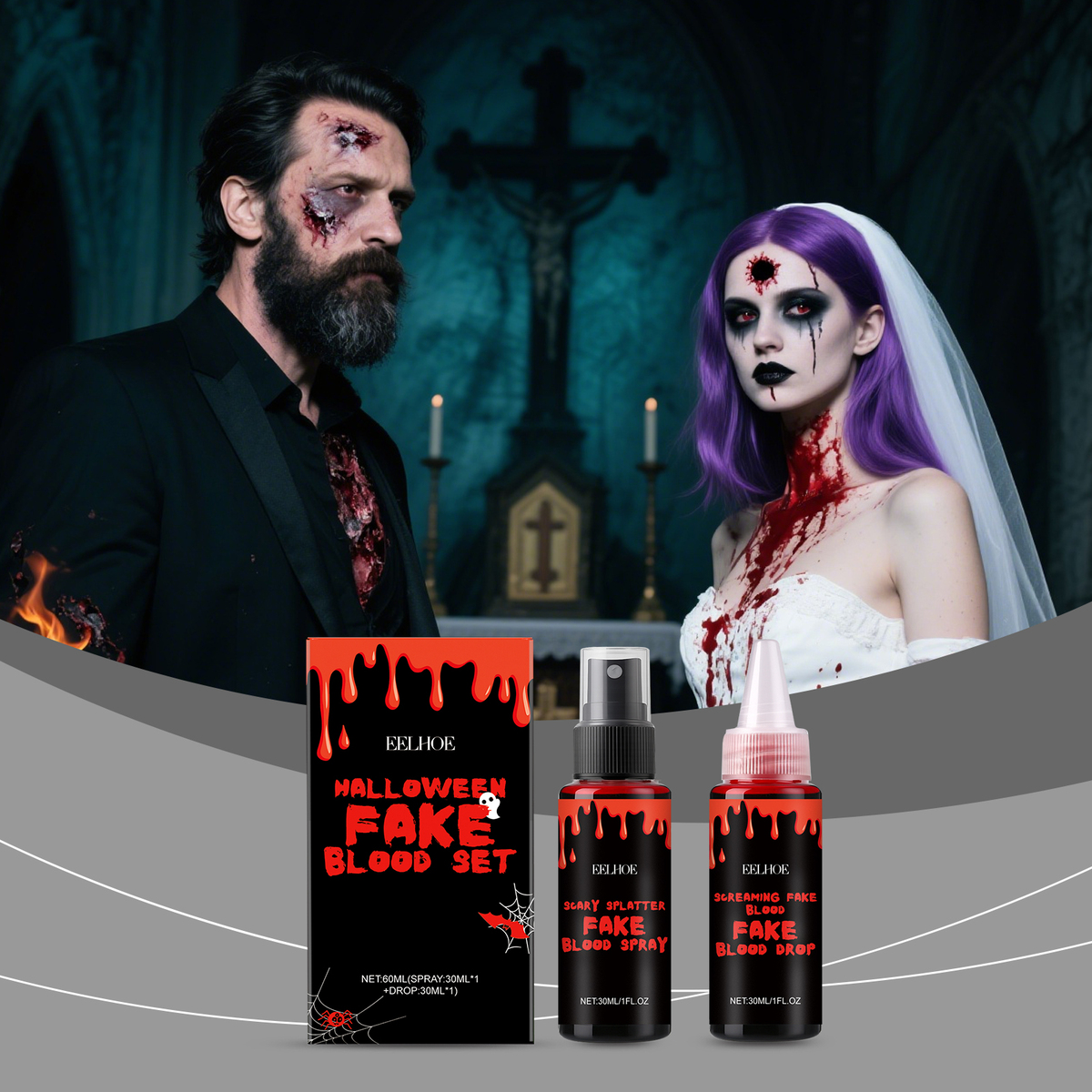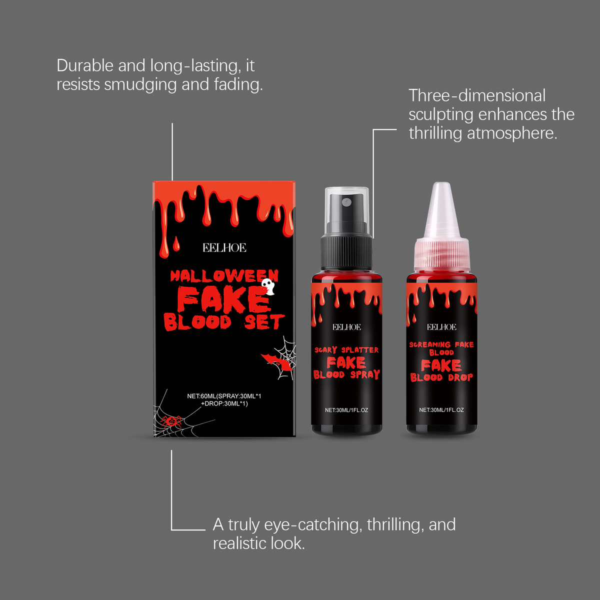 - 1/2/3Box x60ml, Halloween fake blood set, spray and drop