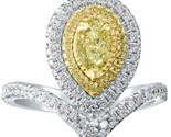 - 1.20 CT Oval Fancy Yellow Offset Natural Diamond Ring 14k White Gold