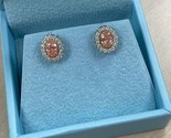 1.20 TCW Oval Halo Lab Grown Vivid Pink Diamond Stud Earrings 14k White Gold