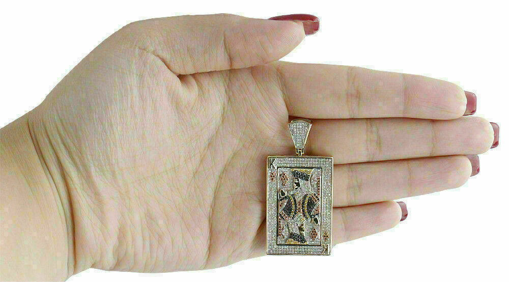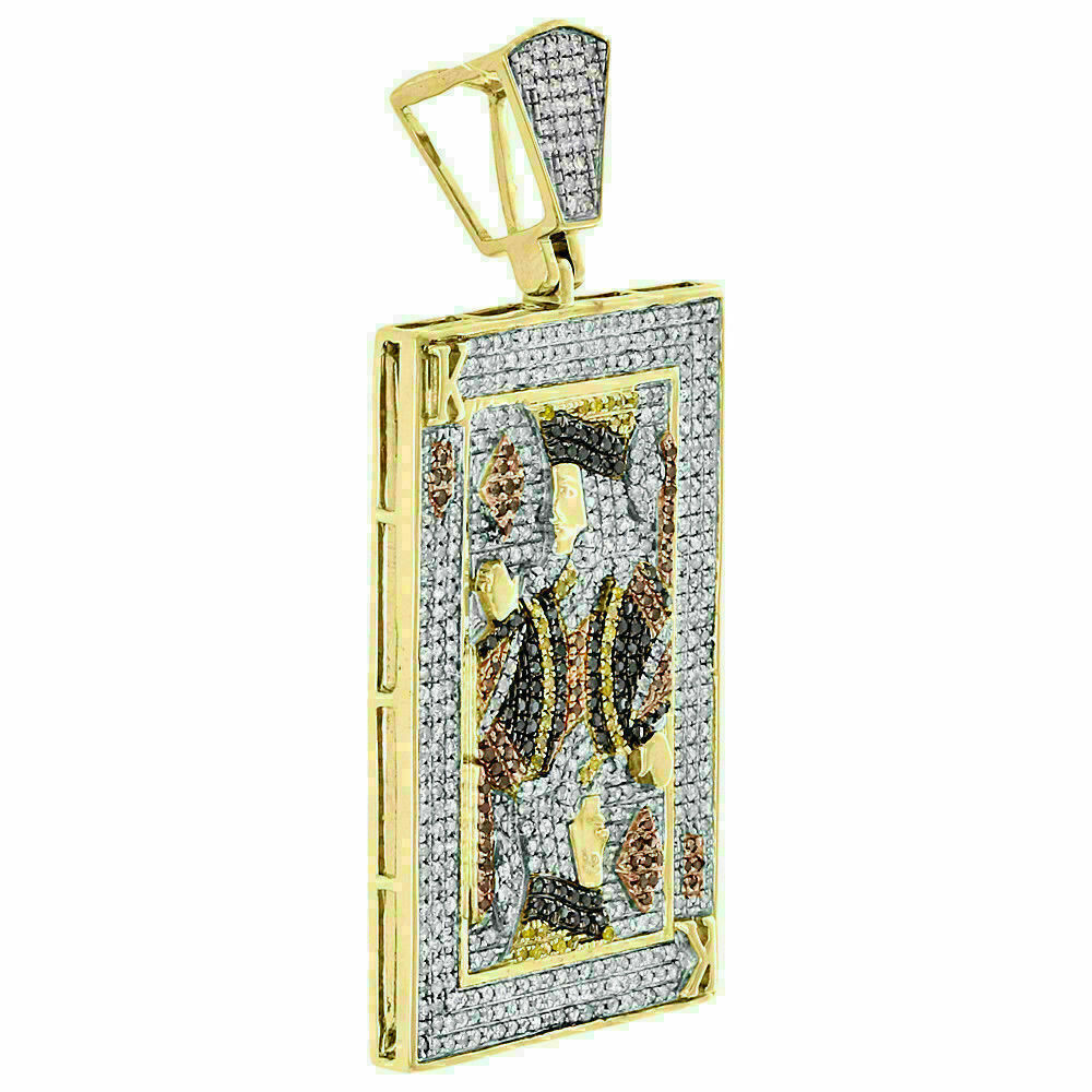 1.25 Ct Diamond Pendant Royal King Poker 2" Inch Charm 10K Yellow Gold Over
