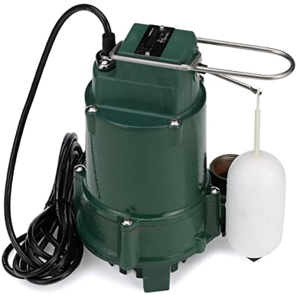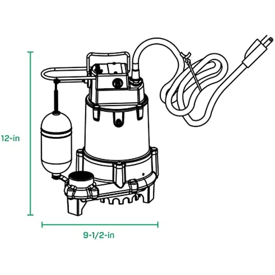 1/2-horsepower motor, the sump pump works quickly, and its sturdy, solid cast iron construction holds up against the harsh environment of a sump pump basin. You?ll stop worrying about the high costs of experiencing a flood and begin enjoying your basement again. Sump pumps have many other benefits as well, including: Reducing the chance of sewage backups. Controlling the humidity in your home by getting rid of standing water. Reducing the growth of mold and mildew by decreasing dampness. Premium vertical switch fits into 10-in diameter sump basins. Non-clogging vortex impeller removes lint and debris. Rugged cast iron motor housing for long life. 1-1/2-in NPT discharge passes 3/8-in solids. High efficiency, overload protected, oil-filled motor. 100% Factory tested. 3-year limited warranty. 9-ft. cord length.