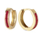 - 1.3 ct 14k Solid YELLOW Gold Hoop Huggie Earrings Princess Cut Ruby