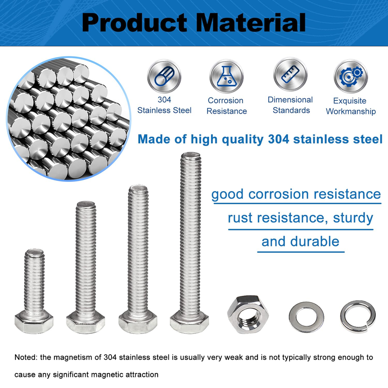 - 1/4-20 Hex Bolt Set, 180 Pcs Stainless Steel with Nuts and Washers