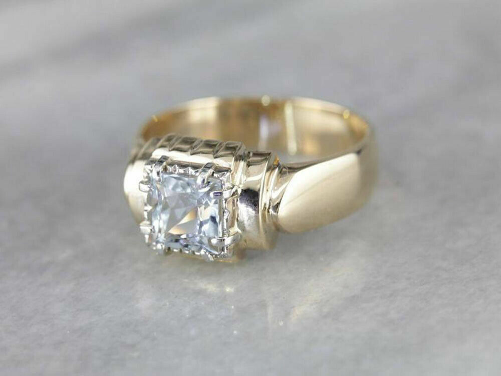 1.61Ct Simulated Emerald Diamond Statement Ring 14K Yellow Gold Plated Silver