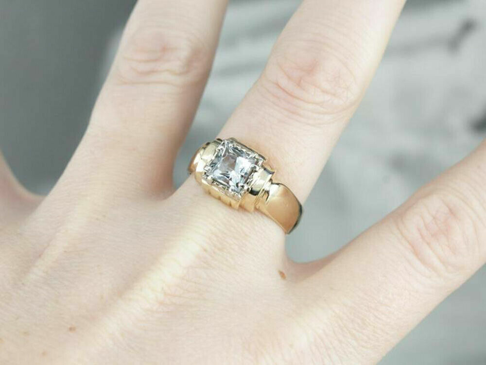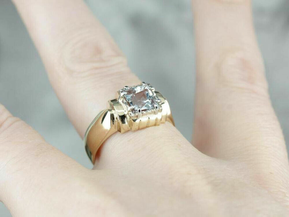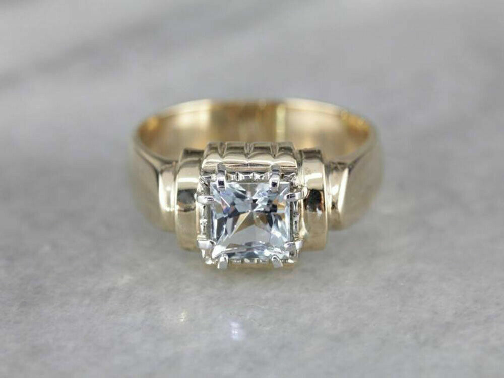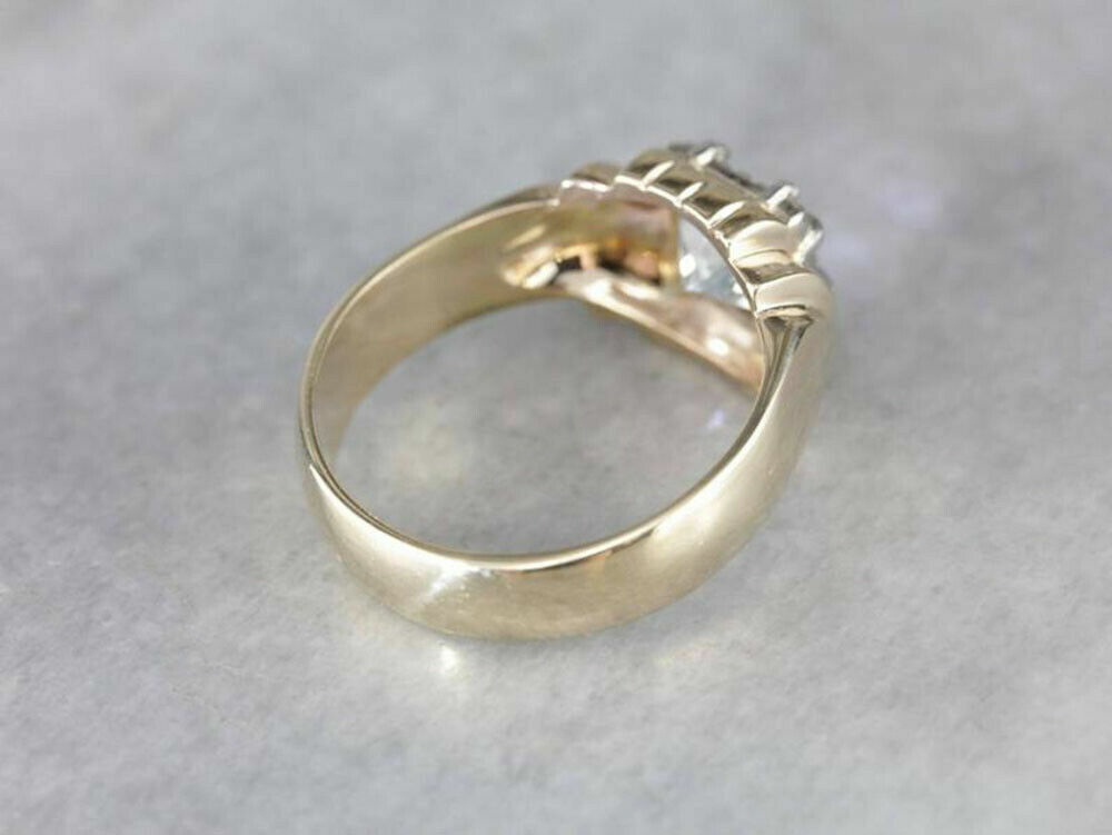 - 1.61Ct Simulated Emerald Diamond Statement Ring 14K Yellow Gold Plated Silver