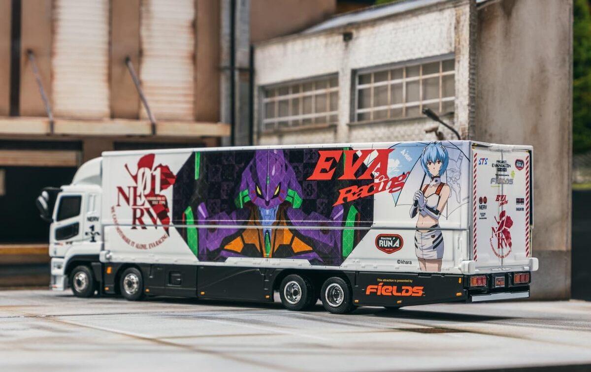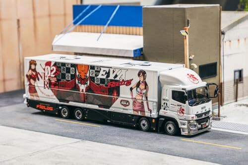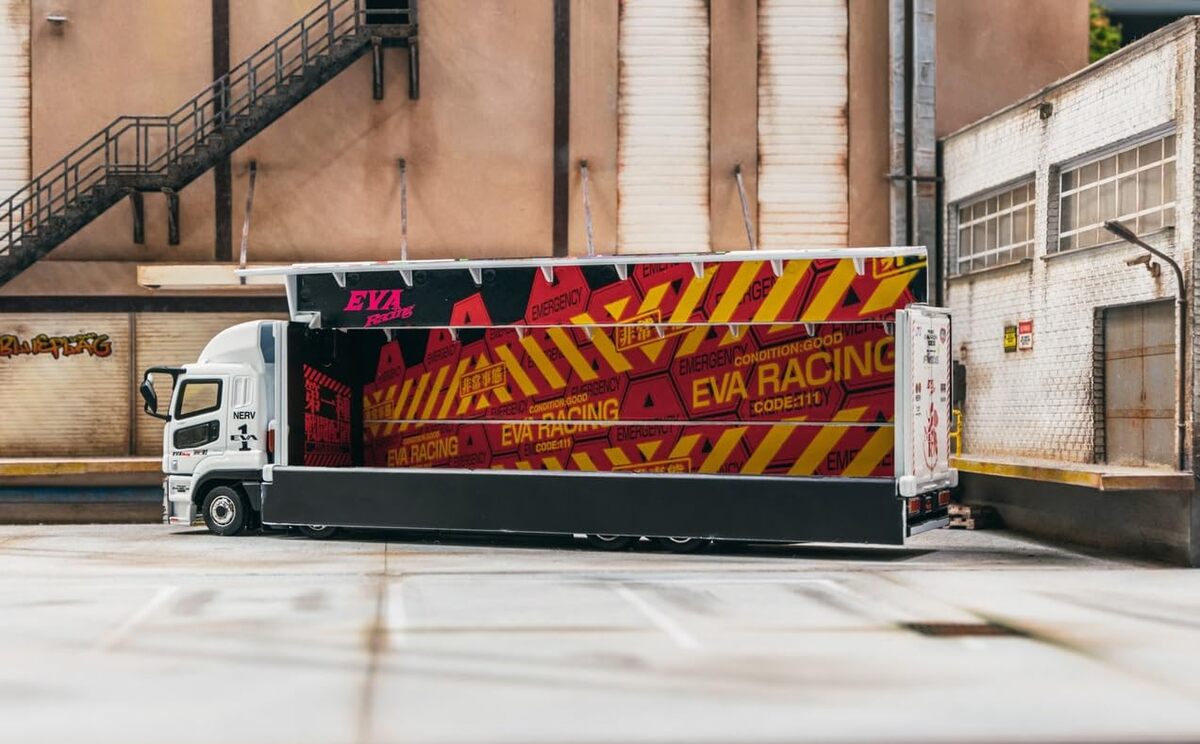 - 1/64 Tarmac Works Fuso Truck with Transporter White with Graphics EVA Racing Tru
