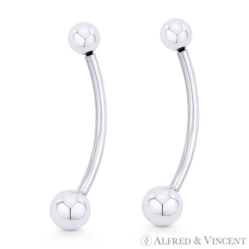 The featured earrings are cast in .925 sterling silver and showcase curved barbell designs w/ 6mm 8mm ball beads then finished with pin- -tube posts for an easy fit.