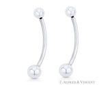 1.6" Curved Barbell Drop Earrings w/ 6mm 8mm Ball Beads in .925 Sterling Silver