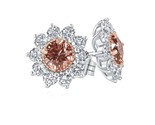 - 1.70 CT Round Lab Grown Vivid Pink Diamond Sunburst Stud Earrings 14k White Gold