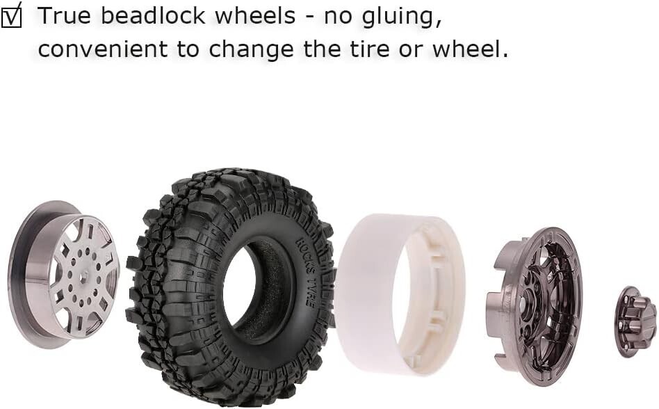 - 1.9 Inch RC Crawler Tires with Beadlock Rims - Superior Traction & Stability