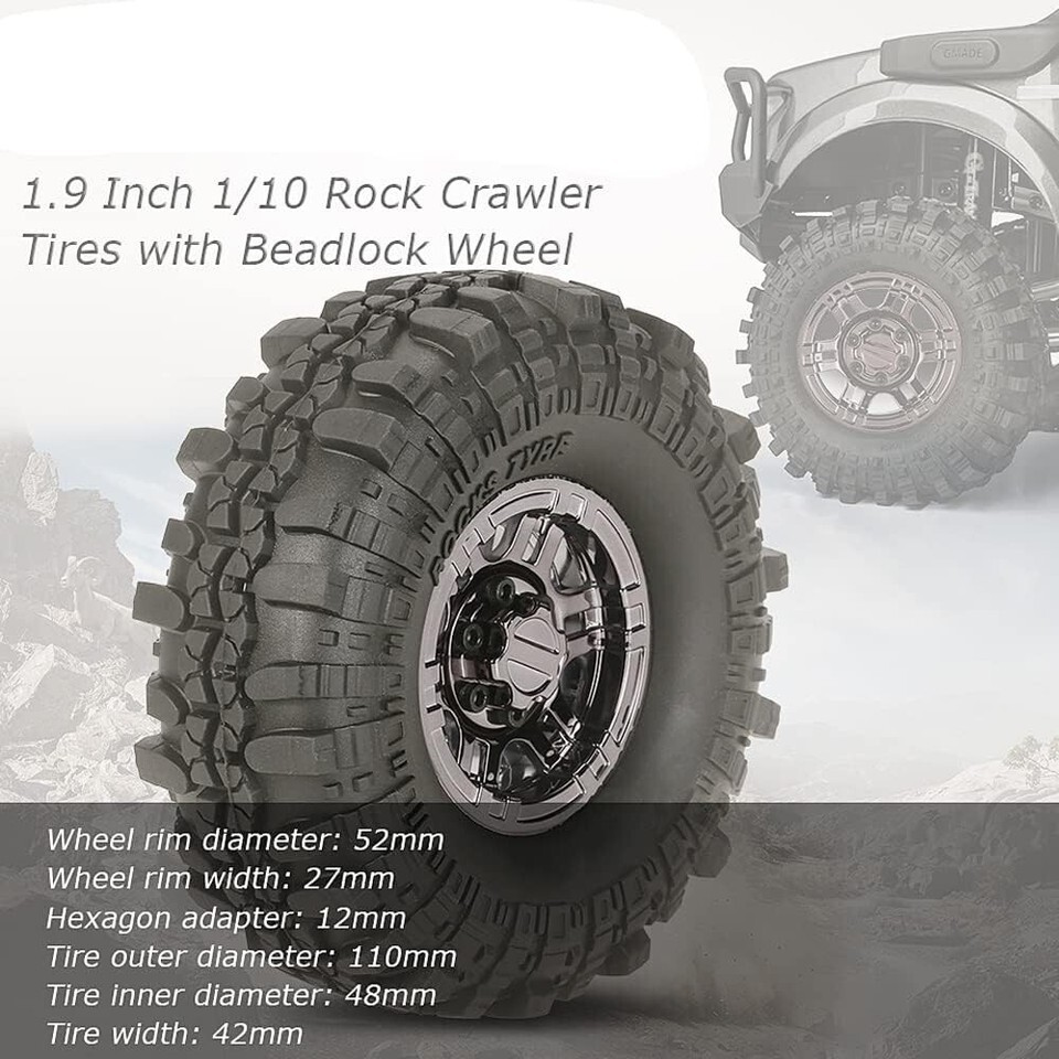 1.9 Inch RC Crawler Tires with Beadlock Rims - Superior Traction & Stability