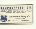 1 Antique Pharmacy Label CAMPHORATED OIL Jennewein Drug Co. Louisville Kentucky