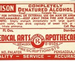 - 1 Antique Pharmacy Label DENATURED ALCOHOL Medical Arts Apothecary Pensacola