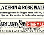 - 1 Antique Pharmacy Label GLYCERIN & ROSE WATER Garland St Pharmacy Bangor Maine