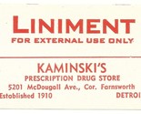 Antique Pharmacy Label LINAMENT Kaminsky's Drug Store Detroit |