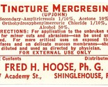 Antique Pharmacy Label TINCTURE MERCRESIN Fred H. Hoose, Ph. G. |