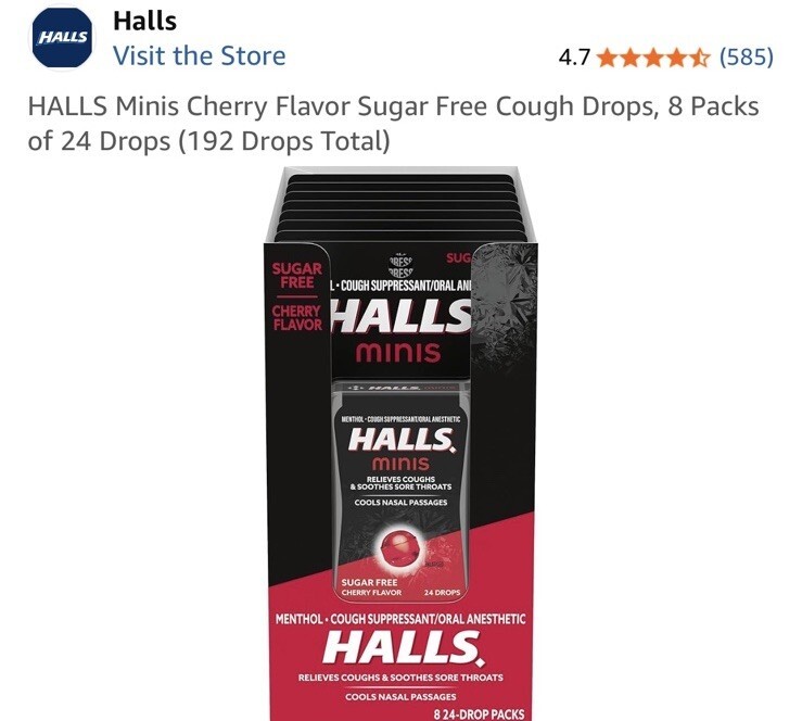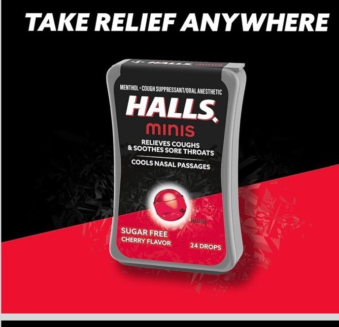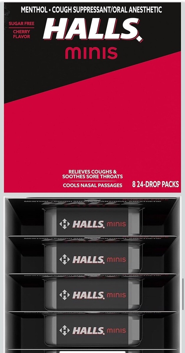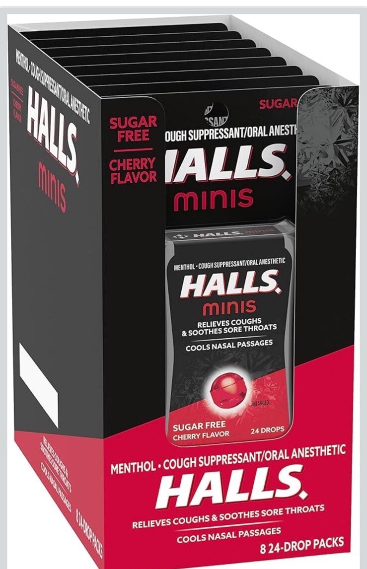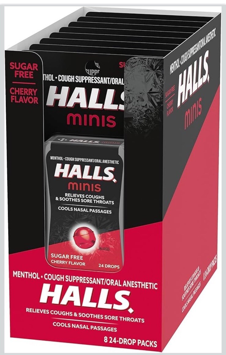 - 1 CASE Of 8 Pk Halls Minis Mentho-Watermelon Flavored Sugar Free Cough Drops 192