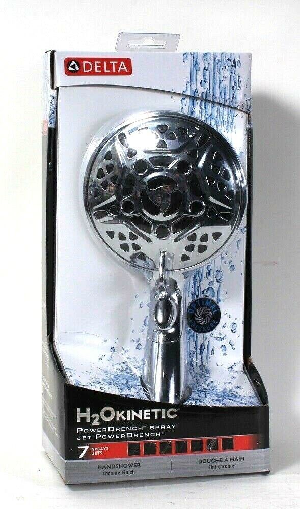 - 1 Count Delta H2O Kinetic PowerDrench 7 Spray Jets Chrome Finish Handshower
