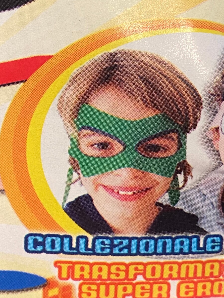 It's from a vending machine. The mask is a kid's size mask that has eye holes and ties in the back.
