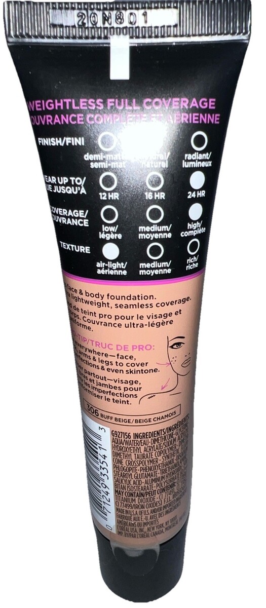 1-L'oreal INFALLIBLE Total Cover #306 BUFF BEIGE New/Sealed/Discontinued SeePics