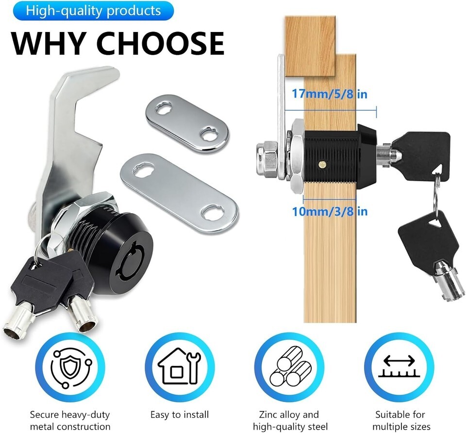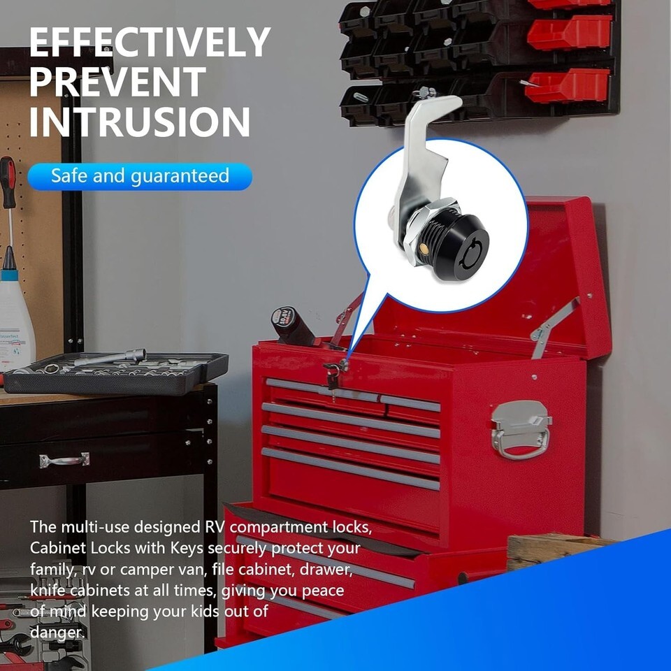 Experience peace of mind with our heavy-duty tool box locks, designed for long-lasting security and ease of use. Whether you need to secure cabinets, drawers, tool boxes, mailboxes, or camper doors, our lock is the perfect replacement. Made from high-quality zinc alloy, it guarantees a sturdy and durable performance for to come.