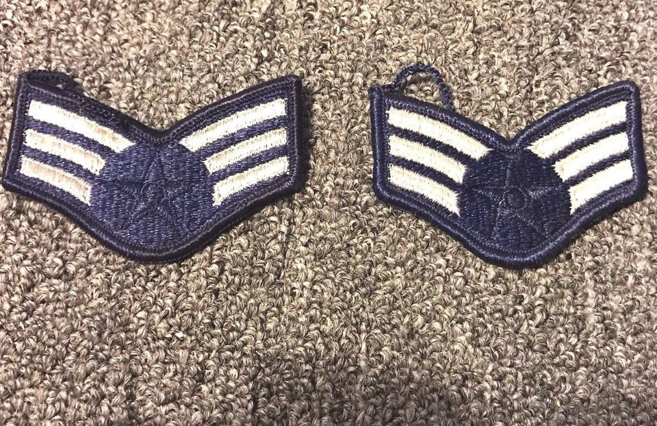 - 1 PAIR 1976-1993 SEW ON USAF Air Force Rank Patch SENIOR AIRMAN E-4 BLUE FEMALE