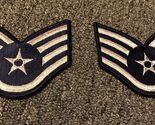 1 PAIR 1976-1993 SEW ON USAF Air Force Rank Patch STAFF SERGEANT E-5 BLUE MALE