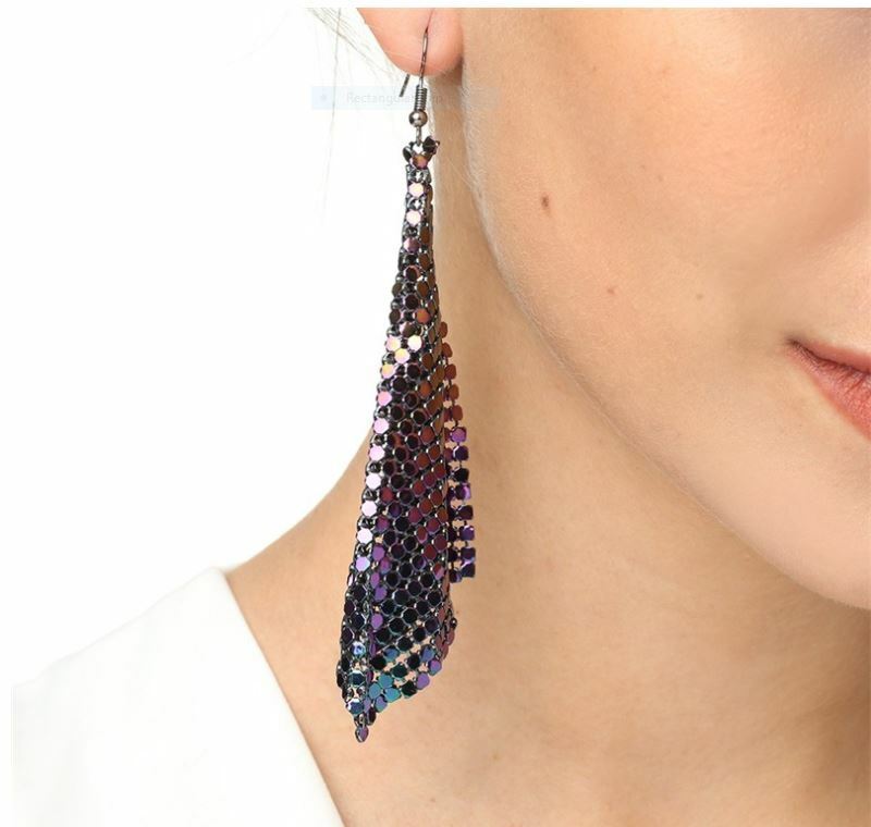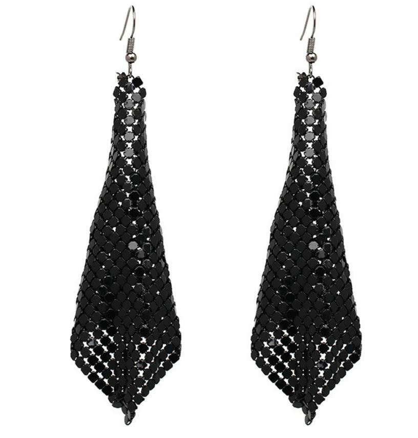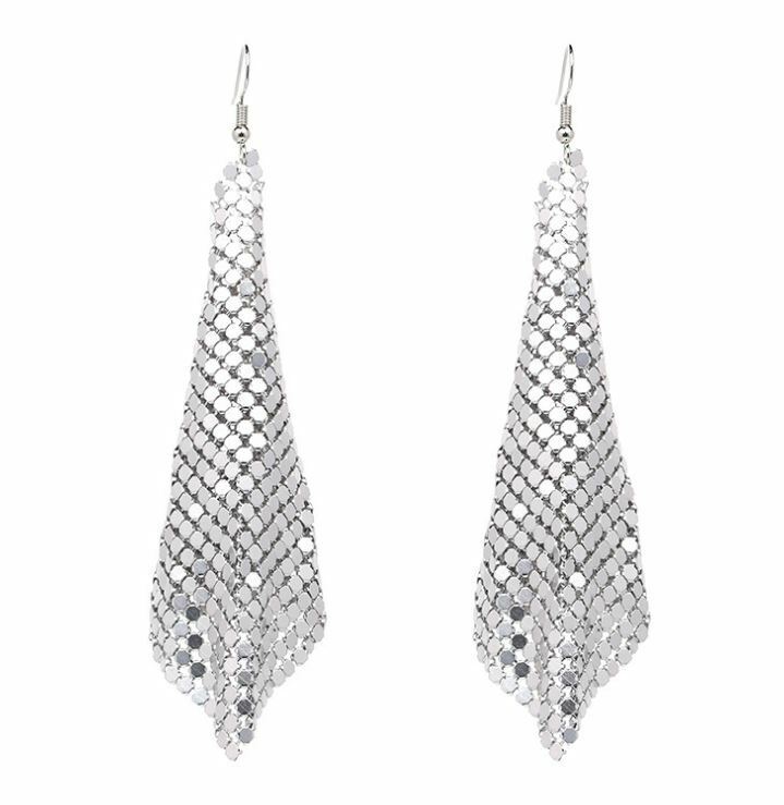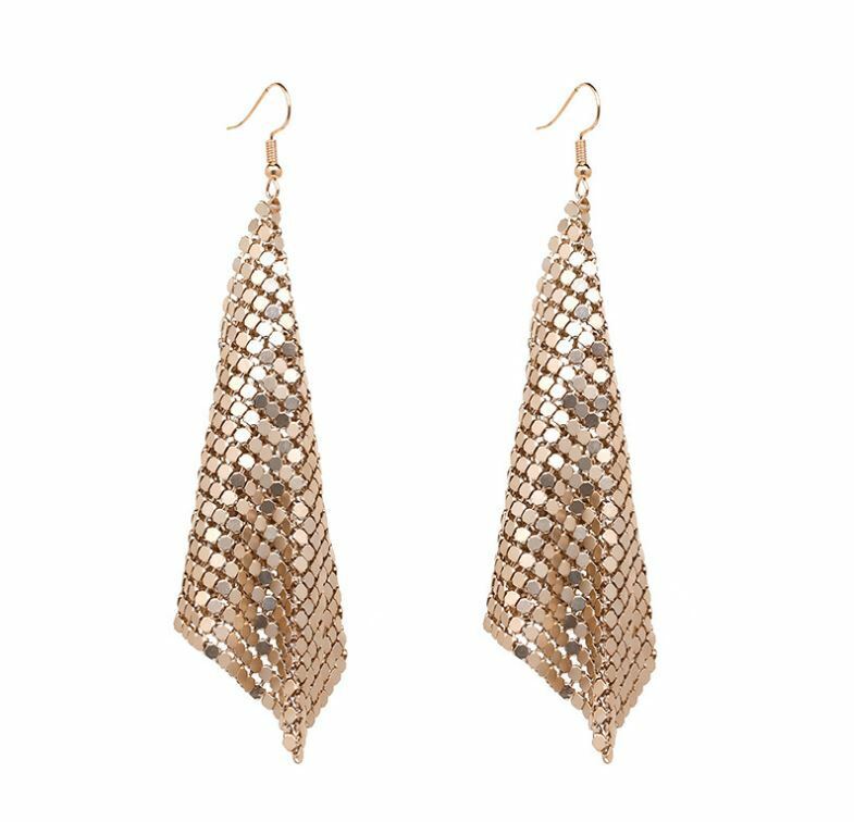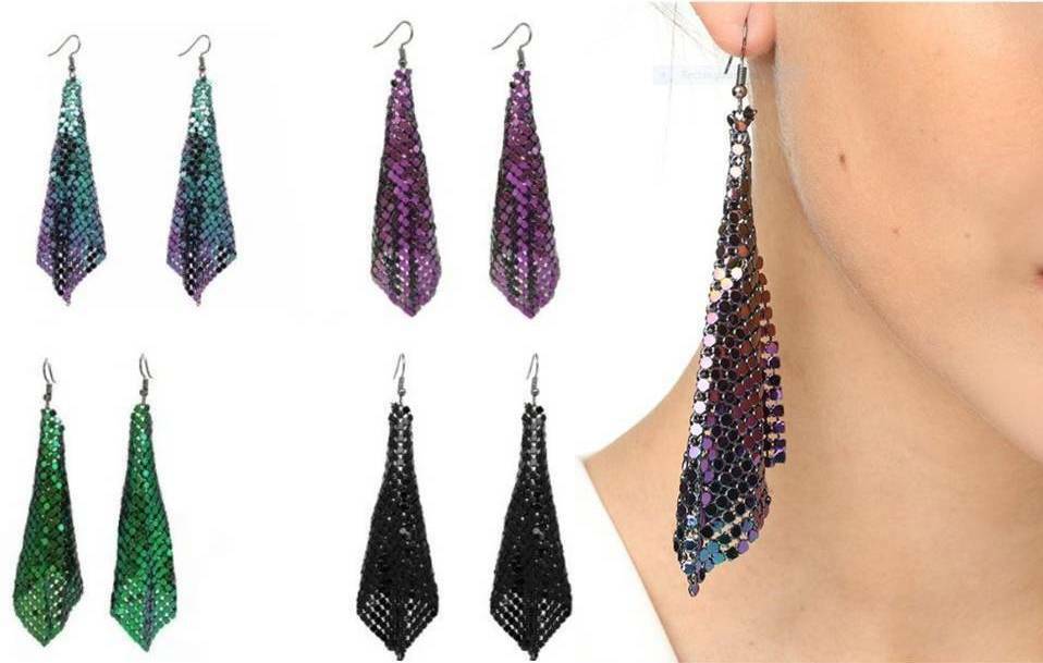 METAL: Colored Metal Plated, Soft Metal Chip Cloth-Shaped Bling Dangle Earrings