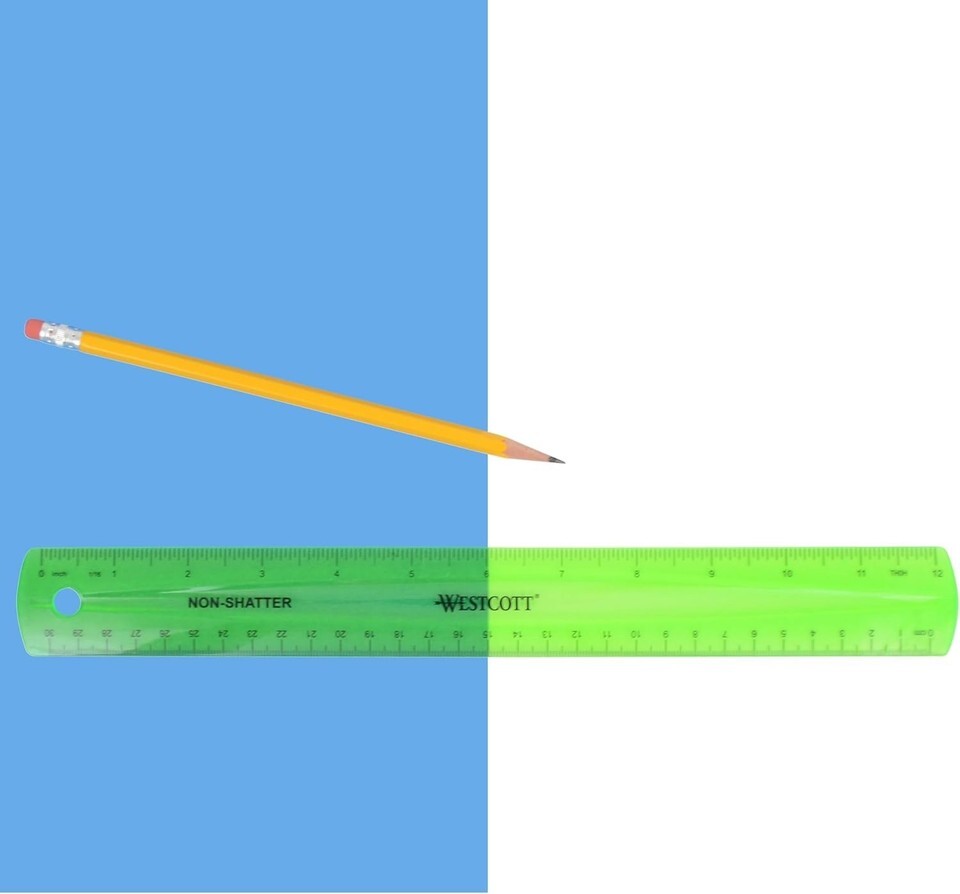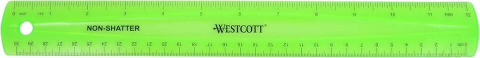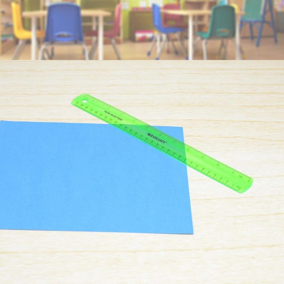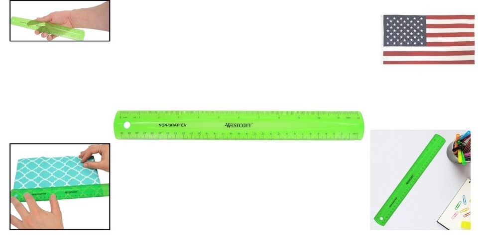 1 Pc Shatterproof Ruler for Mathematics, 12-Inch Flexible Transparent Plastic, Green (Westcott 16012)