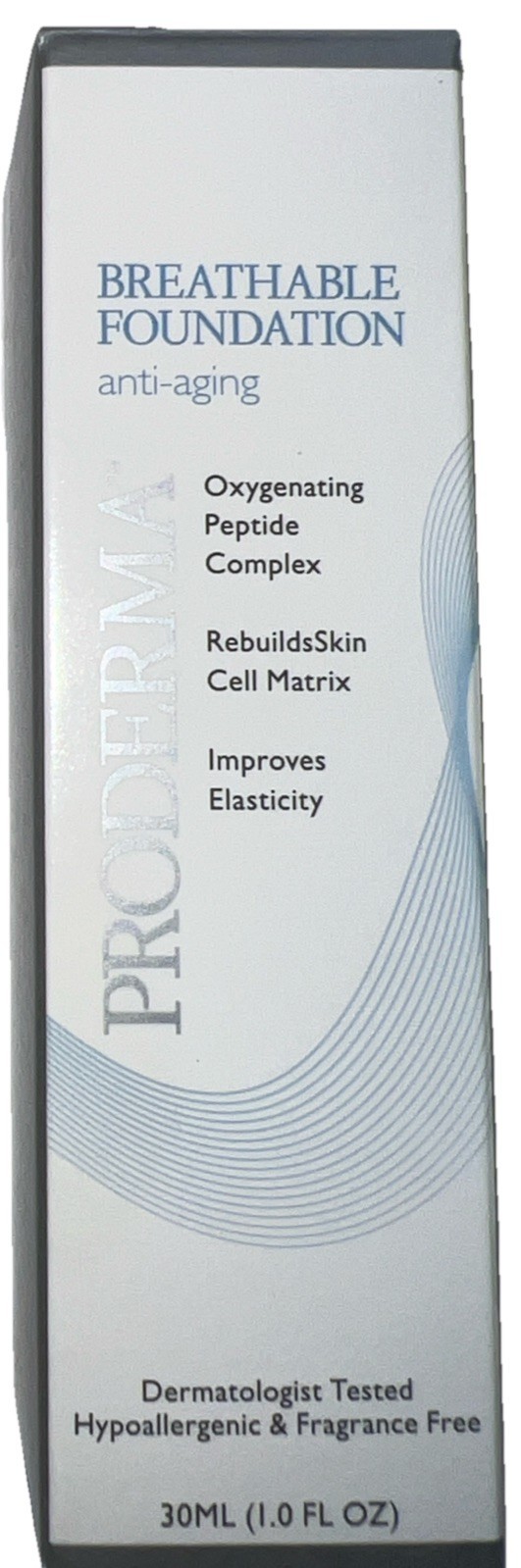 Proderma breathable foundation is an anti-aging foundation that has a unique "proprietary oxygenating peptide complex" that uses antioxidants and vitamins to nourish and protect skin. This allows the skin to breathe and does not cause blemishes or clogged pores. This foundation has ingredients that increase elastin and collagen production for a more youthful appearance