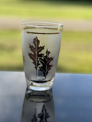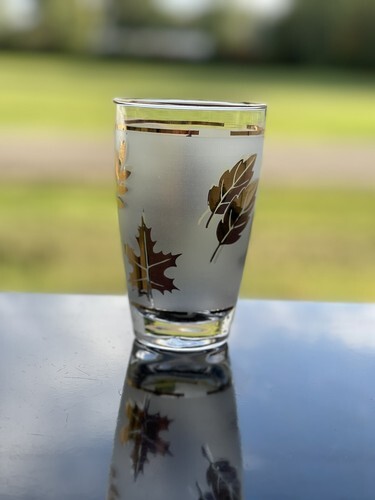 - 1 Vintage 1960 Libbey Frosted Gold Leaf 8oz Drinking Glass Juice Water