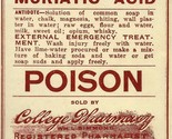 1 Vintage Pharmacy Label MURIATIC ACID POISON College Pharmacy Worcester Mass