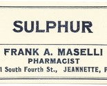 1 Vintage Pharmacy Label SULPHUR Pharmacist Frank A. Maselli Jeanette, PA.