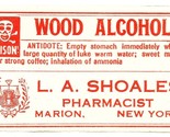 Pharmacy Label WOOD ALCOHOL L.A. Shoales Pharmacist Marion NY |